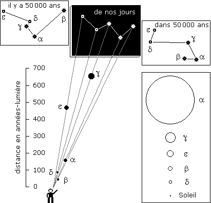 Alors pourquoi l'étoilement du ciel nocturne demeure-t-il, au fil des ans, aussi semblable ? Les constellations ont-elles toujours eu la même apparence ? Lors de la dénomination originelle de ces regroupements, l'observateur avait-il plus de facilité à percevoir, à imaginer un scorpion, un lion, un bélier ou un taureau ?
